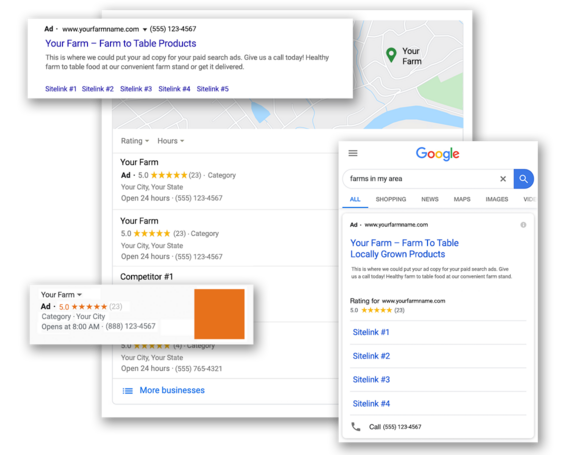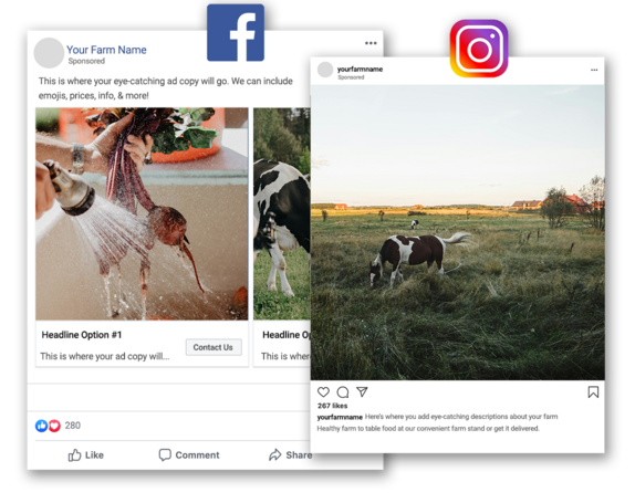 Utilizing Facebook’s advertising platform, we can tap into many different audiences of people on Facebook and Instagram. Social Media advertising has the unique ability to not only target the right Farm customer in the area of your choice, but it also allows social interaction between a customer and the Farm . People can comment, like, and share your post with other friends and family. Facebook also has the ability to use video and image ads to engage potential customers. Your customers are Facebook and Instagram, and we’ll use these platforms to reach them directly with your messaging.
